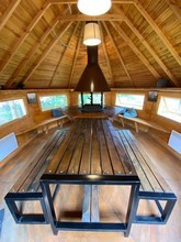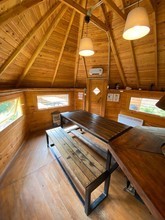 В любое время года вы можете арендовать теплый домик или гриль домик с просторными террасами, вместимостью от 8 до 20 человек. Каждый домик уникален по своему, которые включают в себя: посадочные места, кухонные гарнитуры, телевизоры с Алисой, камины, кондиционеры, водопровод. У каждого домика имеется своя терраса, на которой расположены посадочные места, удобная мангальная зона с водопроводом, освещение и розетки.
